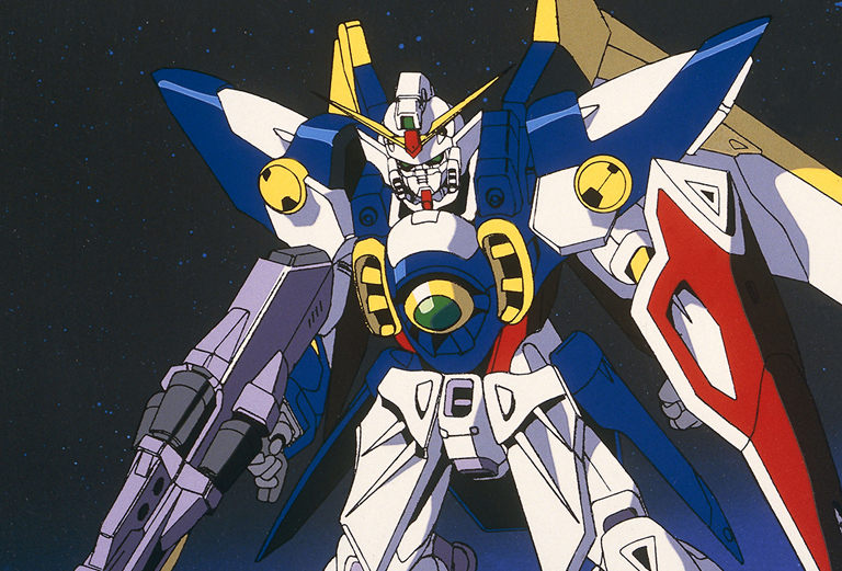 It’s the Wing Gundam! Admittedly it’s sometimes hard to tell between it and Wing Zero, but the blue shoulders are a give away…