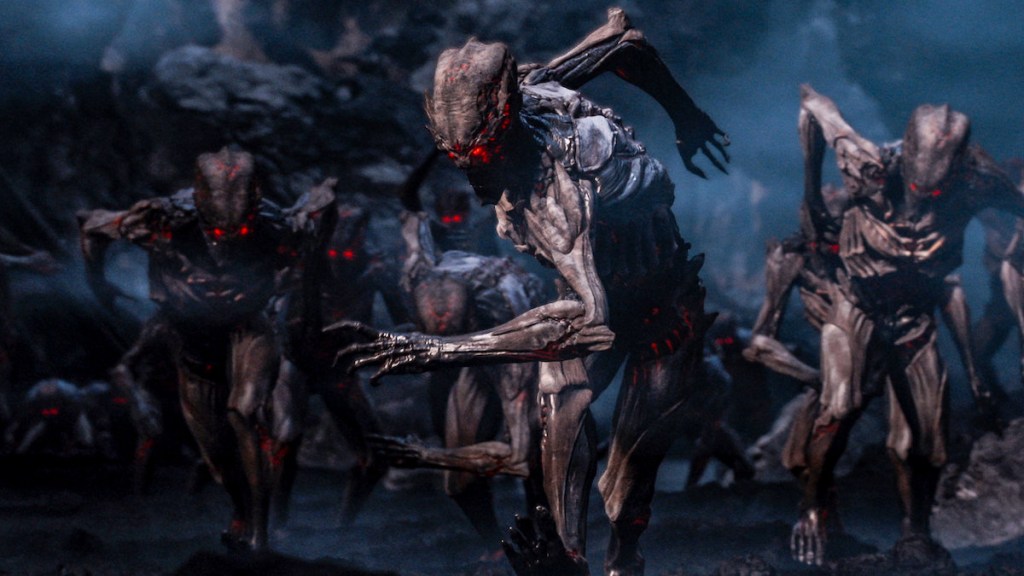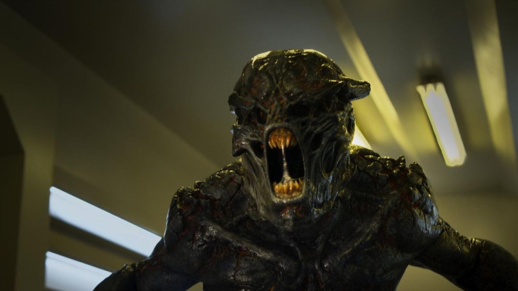As I said in the “Good” section, I understand the budget issues, but I still dislike how most of the film was Space Marines vs. Zombies. Yes, there were zombies in the games, I’m not saying they shouldn’t be here, but that’s pretty much all there was for a good majority. The demons when they did show up looked literally nothing like they do in the games, given they end up firing fireballs I assume they were supposed to be the Imps, but they looked nothing like them. By the end of the film it’ just Ripley left, sorry, it’s just Dark left as all her team was wiped out, including nice guy scientist, and she’s thrown into the portal to Hell by now seemingly immortal Betruger. It’s here where they over-reached as Dark encounters an alien landscape with loads of CG Imps and a fiery knight demon… thing (that bears no resemblance to any game enemy) and it’s all too much for the budget, though it’s impressive enough given the level of the film, I suppose. She blasts the head demon with the BFG and jumps into a portal back to Earth, leaving some plasma grenades exploding behind her.
