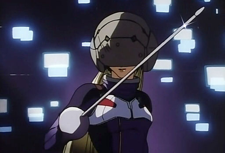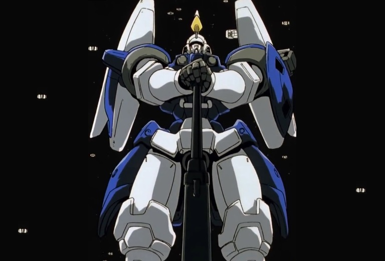 Lady Une wakes up from her coma and flies to space in Heero’s original Wing Gundam, then gets it destroyed before swanning off to the generic commander role, answering two “whatever happened to?” questions in a few minutes, but of course instantly dropping them as well. Then there was a scene of Duo’s old friend whose name I can’t remember returning to steal plans for the Libra (which Heero later says “helped tremendously”, but never says why…) only to get hurt and written out, and during the course of this Duo fights Mobile Doll versions of the Mercurius and Vayeate, just for the hell of it as the two suits are promptly dispatched by Duo’s Deathscythe.