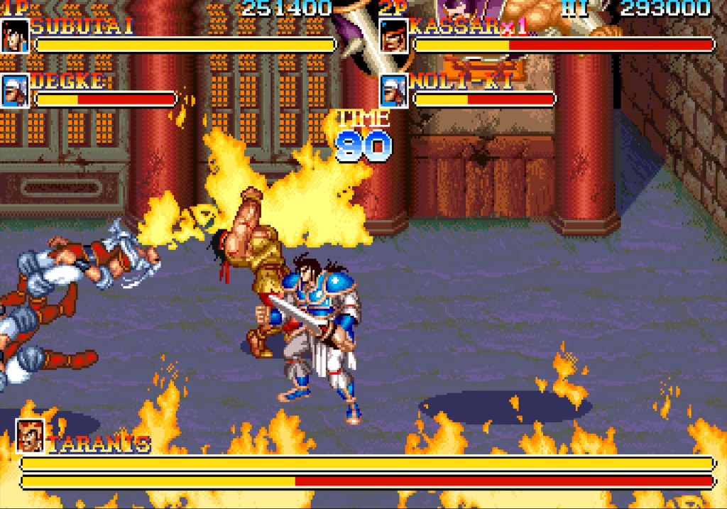 After a three week stay with CAPCOM-like-but-not-quite Rushing Beat games it’s time to return to a good old fashioned CAPCOM scrolling beat ‘em up, one featured on the Beat ‘em Up Bundle no less (which means these screens were taken many months ago at this point!) Warriors of Fate is a unique one in that it’s not only based on a manga that was based on the book that was based on Three Kingdoms era of China, but also the English language version changes all the names and locations, rendering that interesting titbit pointless. Oh well! It’s also a beat ‘em up me and my friend first played via the recently released collection, so no “Thoughts Then” paragraph here! Let’s take a look! Exclamation marks!!