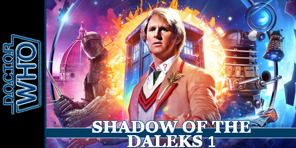 The first half of Shadow of the Daleks is here! … What is it? It’s… well, it’s something that has come into being thanks to the Pandemic. It’s a series of eight half hour stories where the Fifth Doctor has accidentally found himself feeling the effects of the Time War his future selves are fighting, and as a result is meeting the same few faces in very different locations. Basically, two Main Range audio slots had to be removed and so they came up with a way to make new ones by re-using the same few actors/actresses who have good enough at-home recording set-ups. Does it work though? Hmmm… it’s a mixed bag…