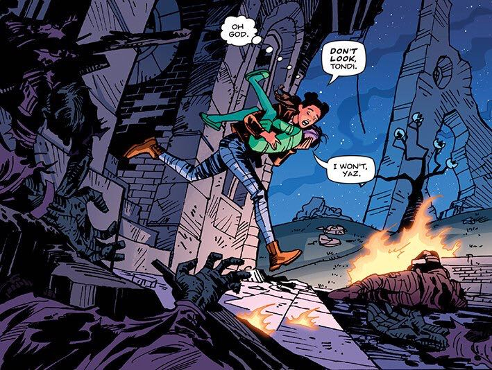 Apart from there being not a great deal of interesting characters, I think the only bad thing was this being the first Thirteenth Doctor comic and then side-lining Yaz for all four issues. She runs off with the orphan girl (Tondi!) and then reappears in the final issue with her without any incident, seemingly. I know it’s hard to come up with something to do with The Doctor and three companions, but for the first story you’d hope for a more even spread.