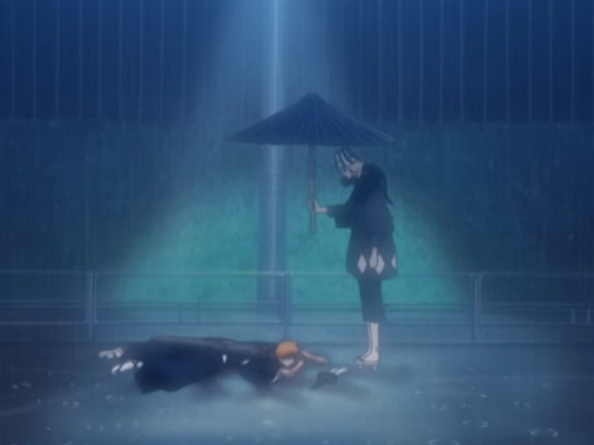 Ichigo tries to stop them from taking Rukia, but she pleads with him to lay there and die peacefully and manages to convince her brother and friend to just take her back to Soul Society for trial and not finish him off. As Ichigo is on the verge of death, Urahara shows up. This all leads to that classic shonen staple: a training mini-arc! Very mini, thankfully. Ichigo is now a regular human again, the Shinigami powers he took from Rukia were the ones destroyed by Byakuya, so Urahara effectively “kills him” so his soul can gain its own Shinigami powers. After a small bit of a run around, including some classic Kubo humour (seriously forgot how much I love Ichigo’s voice actor, Masakazu Morita, and his ability to switch from serious bad-ass to annoyed comedy person in the blink of an eye). Ichigo is thrown down a hole and told he’ll turn into a Hollow in three days if he doesn’t find a way out, and sure enough he… doesn’t make it, and begins to turn into a Hollow. Ichigo enters his inner-world for the first time and meets his… erm, I guess I should avoid final arc spoilers here, so let’s say his Zanpakuto spirit and gains his own Shinigami powers, plus a Hollow mask for good measure…