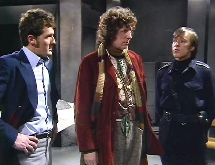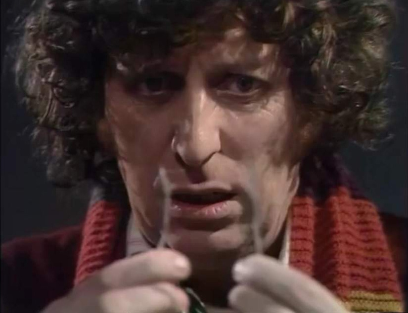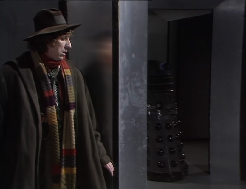 What? The other iconic scene? Oh yeah, right! So while all this is going on The Doctor, Harry and Sarah make it into Davros’ safe bunker and set up some explosives in the Dalek incubation chamber, the destruction of which would end the Dalek race before it got a chance to begin. The Doctor, after a brief tussle with some Dalek blobs, is ready to touch the two wires together to set off the bomb, but hesitates. Does he have the right to commit genocide? Wouldn’t that make him the same as the Daleks? What about all the races that unite to fight the Dalek threat? He ends up not doing it and going with a plan to seal the Daleks in the underground bunker instead. This decision, this moment of morality, is retrospectively called back to many, many times. Hell the whole “Last Great Time War” that nearly wiped out half the universe would’ve been halted had The Doctor just touched those two wires together. It’s another fine moment from Mr. Baker, it’s amazing to think this was still a new gig for him!