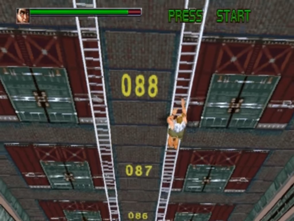As for genre clichés? Well, it does have some overweight enemies (two bosses anyway) and some questionably dressed women enemies, but it lacks a lift level! Admittedly it has a level in a non-moving lift and a section where you climb a lift shaft while avoids lifts going up and down, but it doesn’t feature the cliché lift level!