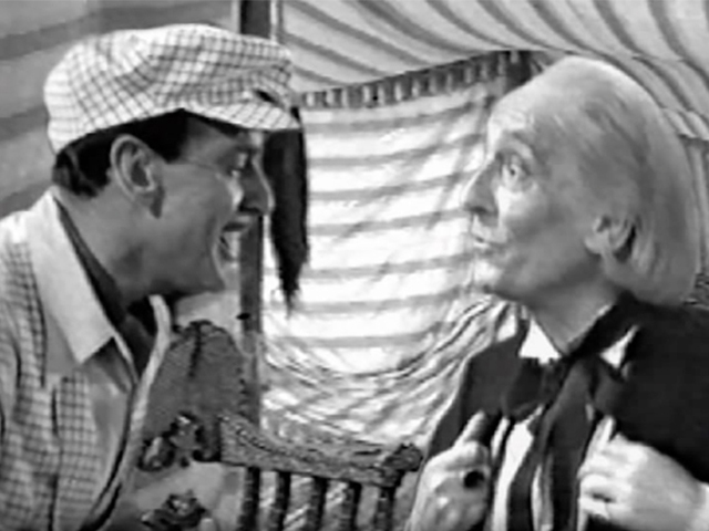 The TARDIS then arrives in a 1920s movie studio, leading to Steven getting mistaken for an actor and then later chased about the set, including a Scooby Doo-style running in and out of several doors in a corridor scene, while The Doctor meets Charlie Chaplain and Bing Crosby, and has a bit of a crazy time with some “Arabs”. Oh and Sara just sort of… wonders around a bit between sets. They all meet back at the TARDIS and decide to… have a Christmas feast, complete with The Doctor giving a toast to “those of you at home”, breaking the fourth wall entirely. It’s harmless, really, but there are issues, especially in watching it in 2020…