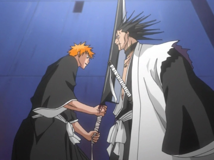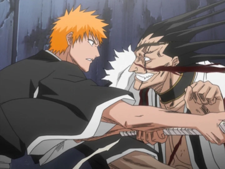 I’ll honestly always remember watching this episode for the first time and just being blown away by this scene, with Kenpachi rushing forward and getting cut across the face without flinching. Terrifying!