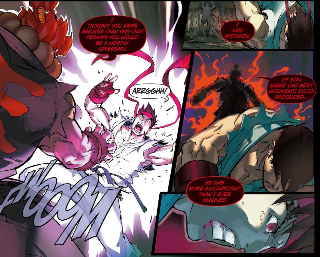 Not a lot! I mean, some of the small interlude chapters were a bit nothing or had weird artwork, but they were just bonus couple-of-page side stories so I can hardly complain. Given the size of the cast, even pre-SFII, is large, they’re doing a good job of juggling them. About the only thing I didn’t like was seeing M. Bison arrive and get defeated so soon, but hey-ho… he’s back already!