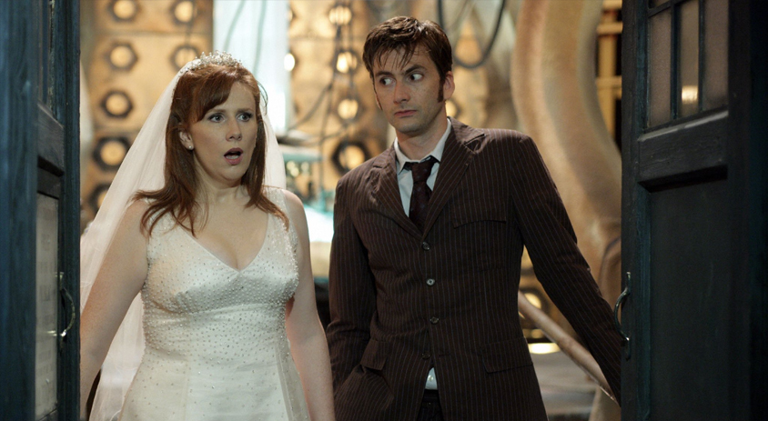 The reception is attacked by the Roboforms and soon The Doctor, Donna and her would-be husband Lance (Don Gilet) investigate the company the pair work for and find a large underground lab where someone is creating a very specific type of energy, one that hasn’t been seen since the “Dark Times” of the universe, and the same energy that flung Donna into the TARDIS. The Empress of the Racnoss (Sarah Parish), a race that was thought to be extinct since the Dark Times, arrives and reveals that Lance was actually on her side and had been secretly dosing Donna with the energy via coffee for months, and the whole relationship was a sham to please the Racnoss. The Doctor and Donna escape in the TARDIS and have a bit of a heart to heart…s, before they watch the Earth itself being formed and notice a Racnoss ship actually formed the core of the planet around itself. They return to Earth only for Donna to be kidnapped and brought to the Racnoss Empress, finding out that unsurprisingly she betrayed Lance and strung him up as well.
