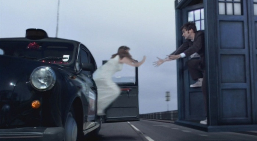 Turns out this was all to create enough energy to hatch the eggs she left in the centre of the Earth, and to give them a feast to start with Lance is dropped into the hole. The Doctor arrives in time to save Donna and then gives the Empress one chance to collect her children and be dropped off on an uninhabited world, but she refuses and so The Doctor floods the building, and specifically the hole where the recently hatched Racnoss are trying to climb up. Donna snaps The Doctor out of it in time for the two to escape as the Empress mourns the death of her children, then tries to attack London in her star-shaped spaceship… only to be blown to pieces by UNIT. The Doctor drops Donna off and the two part, the latter deciding not to go with the Time Lord on his adventures.