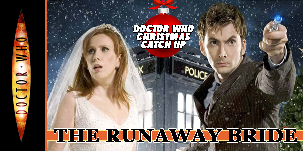 Having already reviewed the first Tenth Doctor Christmas story a few years ago, we jump straight to the second. The Runaway Bride features the debut of future companion Donna Noble, and even dabbles in the Dark Times (which is relevant to the current Time Lord Victorious storyline being released…) Overall though it is what it was always meant to be: a fun Christmas story, with a bit of Doctor rehabilitation after losing Rose in the previous story. Let’s take a look then!