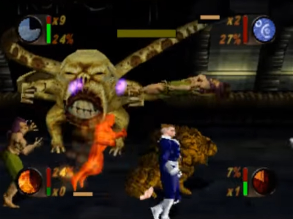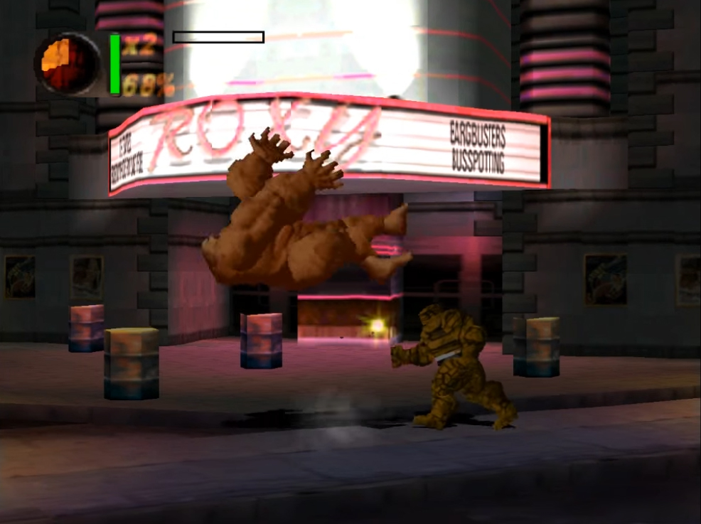 Although the graphics are rendered in 3D, the action is still very much on a 2D plain, with controls that match up to a lot of the games I’ve covered on this weekly feature. You have punches and kicks, the ability to jump and the ability to throw enemies and objects across the screen, plus a few special moves unique to each of the five characters (The titular Fantastic Four and She-Hulk), though the moves are powered via a meter next to the health bar rather than draining your health when you use them. There are of course health pick-ups as well as “Force Power” pick-ups (that’s the energy for the special moves) and that’s your lot!