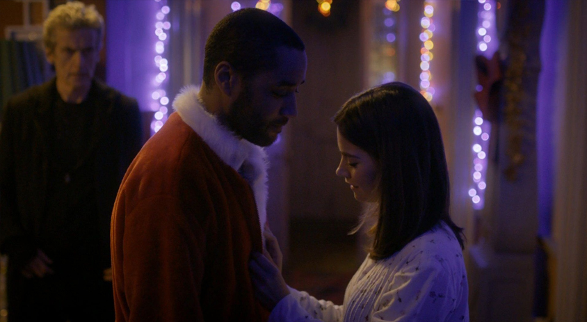 Clara is still mourning the death of Danny Pink, seen in “Dark Water / Death in Heaven”, and that’s about it, really. A few references to past Christmas specials here and there, but just in passing…