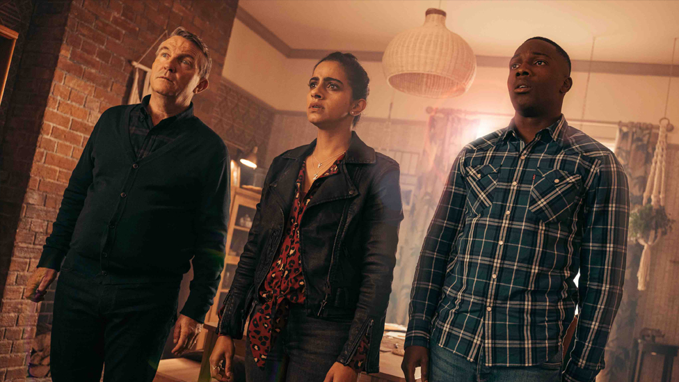 This leads to a split-up, as Yaz and Captain Jack head to an off-the-records facility in Osaka while The Doctor, Graham and Ryan confront Robertson, though they soon bring him to Osaka (for… some reason). Yaz and Jack find a cloning facility making Daleks, and have to deal with a few face-hugger / spider-on-your-back scenarios, which are always good fun to watch. Everyone reunites in time to see poor young technician Leo Rugazzi (Nathan Stewart-Jarrett) being controlled by a Dalek mutant, revealing that the entirely electronic Dalek “Security Drones” that have been appearing across the UK are about to have cloned Dalek mutants teleported into them, leading to a good old bit of Dalek mass slaughter. I enjoy the new Dalek look, for the record, I know quite a few people didn’t… not that it seems to matter as The Doctor’s plan to destroy them is to call in a ship full of actual bronze Daleks, knowing they’ll immediately destroy the “impure” Daleks… which they do! Hooray! … except The Doctor then has to deal with traditional Daleks on Earth, which she manages to do using the spare TARDIS that brought her “fam” back to Earth in the previous episode to trick The Daleks into the ship and then making it implode (which seems harsh given TARDISes are sentient and all that…)