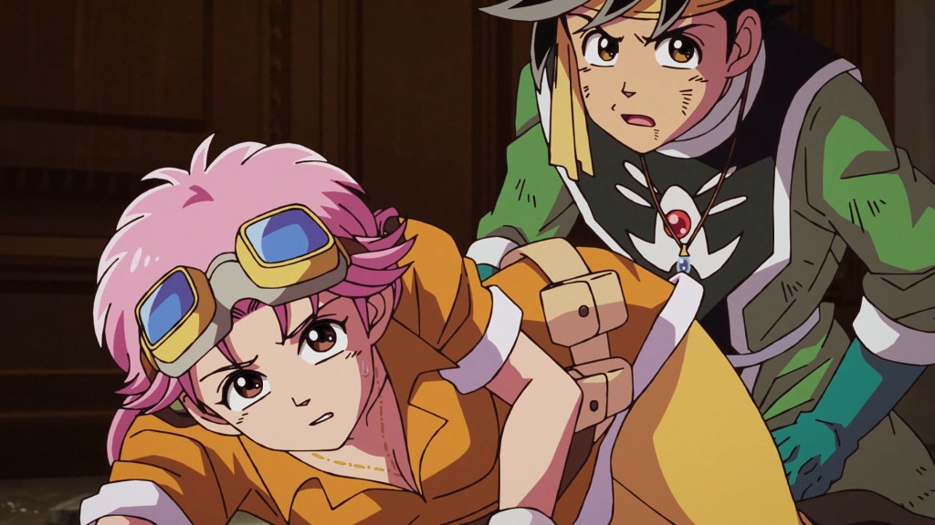 Dai is your classic “naïve boy who grew up away from civilization” type, but he’s also unnaturally strong when pushed, something Avan discovers when he arrives on Dai’s island with his student Popp. Dai’s training is cut short by the reappearance of the Hadlar, the Dark Lord the old hero had previously defeated, leading to Avan doing the whole heroic sacrifice thing to save his students. Dai and Popp then go out into the wide world to get stronger, save people and eventually defeat Hadlar as the new hero party. They eventually run into Maam, a female student of Avan that has to use a special type of gun to fire magic rather than casting the spells, and the trio become the focus of the series. We go through a “Popp being a coward and then learning to be brave and help his friends” story arc, but that’s about it in terms of character development. In the hero-side anyway, the large crocodile general of Hadlar’s army rather unimaginatively named Crocodine eventually sides with Dai because he values honour in battle, but is immediately cut down by the next big bad of the series…