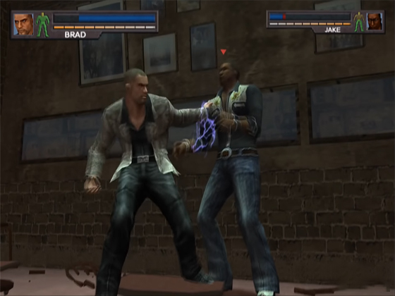 The graphics can only be described as “classic PS2”, the models are decent, with some good detail on the clothes and faces for the time period, and the lighting effects stand out, especially the Tekken-style lightning-like … things that happen when you get a good hit on an opponent. The levels can be a bit murky and grey, again as a lot of PS2 games are, but it’s not too bad. Plus, as I said earlier in the review, the amount of people and destructible objects on screen at once is impressive.