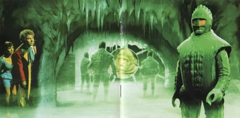 The Doctor and Peri face enemies at every turn on the planet Magnus. There’s the Time Lord bully Anzor, who made the Doctor’s life hell during his time at the Academy. There’s also Rana Zandusia, the matriarchal ruler of the planet, who seeks to prise the secret of time travel from these alien visitors. Also on Magnus is the slug-like Sil, still bitter from his defeat on the planet Varos and seeking to make his fortune from the most potentially destructive ends. And, deep within the planet, there is something else. Another old enemy of the Doctor’s. And the future is looking decidedly colder…