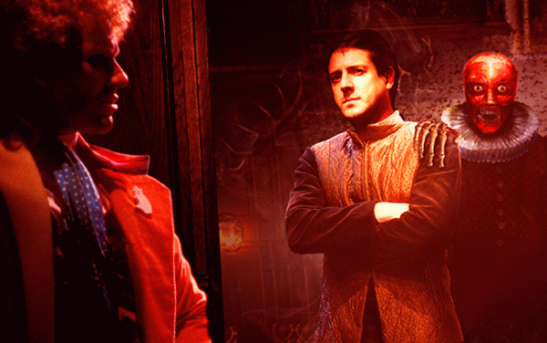 Velez makes for a decent villain, dying several times only to be brought back more skeletal each time, the alien dagger keeping him going for its own purpose. As for The Doctor and Peri? Well, they arrive because the asteroid containing the Omnim hits the TARDIS off course and down to Earth where their Point of Entry is, presumably thinking it would help matters. Instead the duo end up getting involved with playwright and spy Kit Marlowe (Matt Addis) who is currently allowing Velez to use the Omnim tech to show him the wonders of the past and horrors of the present in order to inspire his writing. He is … good friends with a man named Tom (Tam Williams) who as it turns out is a spy also, but one that’s been hired to spy on the Kit after he started going AWOL. This is how The Doctor and Peri end up meeting the tortured Spanish national in several locations throughout the first half of the story, they meet up and befriend the spy double act. One of the Omnim relics is a mirror that allows a person to visit the astral plain, which is an interesting concept for the Doctor Who story, and one I’m sure would’ve looked pretty naff on mid-80s BBC TV! The second half also includes a scene where Peri has to pretend to be the Queen, which is legitimately funny in several places, especially when she “knights” a random sailor, much to the Doctor’s horror.
