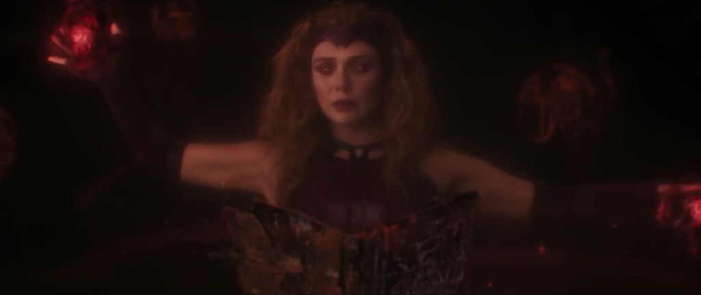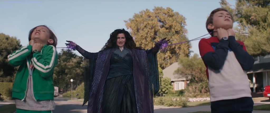 Wanda embraces the Scarlet Witch powers (including a modern version of the classic outfit!) and defeats Agatha before agreeing to stop the illusion. She tucks her children into bed, knowing they’ll vanish, and then says a tearful goodbye to Vision as she returns to the empty plot of land she started in. We then get double mid/end credit sequences, one of Monica being met by a Skrull who informs her she has allies waiting in space, and another where Wanda is going about her business in a remote shack while a version of her as the Scarlet Witch is reading the Darkhold and looking all spooky, eventually hearing the cries of her imaginary children. I guess Dr. Strange will have to deal with all this!