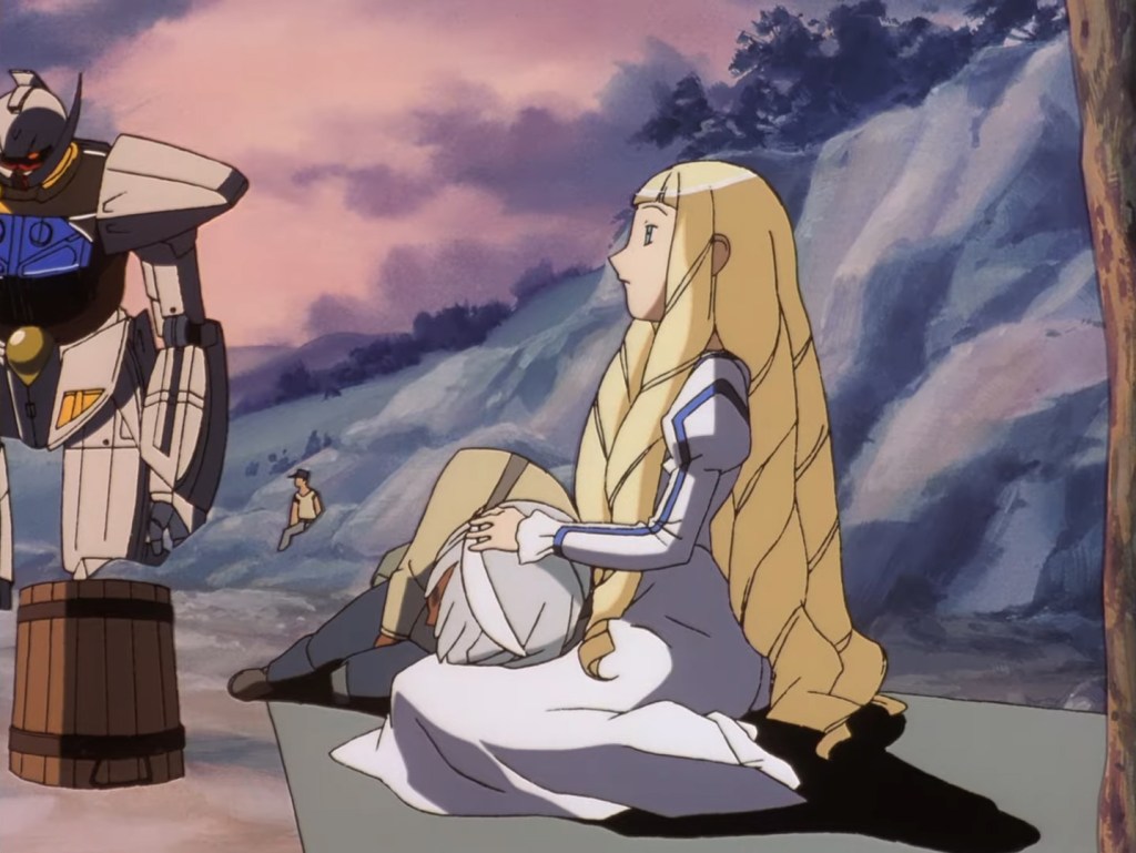 Earth’s militia soon get a helping hand as they begin to excavate mobile suits from the “Dark History”, or the Universal Century timeline, and add them to their own force. A ceasefire is called as both sides try to negotiate a peace where the Moonrace could settle on Earth, but it doesn’t go too well. A trigger happy Dianna loyalist called Corin Nander for one attacks a few times, serving as Loren’s enemy for a chunk of episodes, although the main focus is on the fact that Queen Dianna and Kihel Heim switch places with each other for a bit of a laugh, but then end up having to actually play each other permanently. Kihel (actually Dianna) soon meets Will Game, who she thinks is her old lover from many years ago, but it’s actually his descendant, showing that the Moonrace live a hell of a lot longer than those on Earth do. Will is, of course, killed in dramatic fashion before the fake Kihel’s eyes, inevitably setting back negotiations again. I say of course, but death is actually a rare thing here!