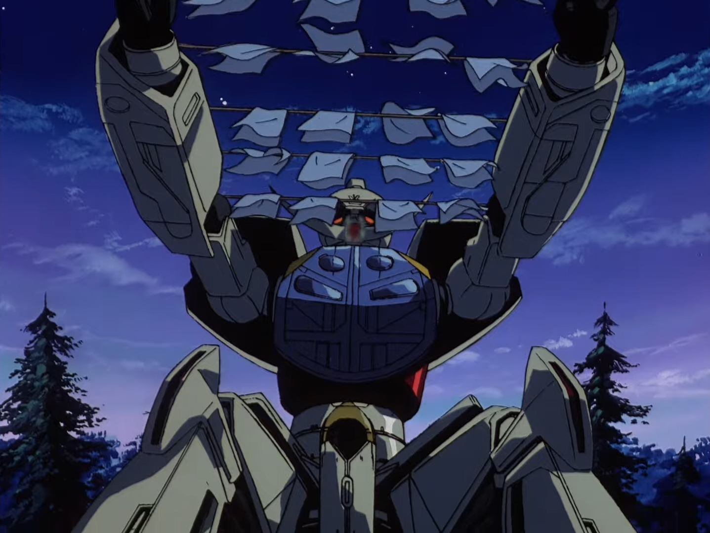 This leads to both Amerian military assaults on the Moonrace settlements and Moonrace assaults on Amerian towns, villages and farms. Both sides have people trying for peace, both have people who think a more violent and direct approach would be best. Episode 20 sees a small peaceful farm get caught in the middle of the conflict and shows the nicer people on both sides try to save his crops as the nastier members fight each other in mobile suits. It’s a really good example of the “no side is purely evil” vibe the show goes for. The Amerian Militia finish excavating a large space-capable ship they christen the “Willgem”, but various Moonrace factions attempt to destroy it before they can get it working. As if all this wasn’t enough stress for the fake Dianna she soon learns of a dissident faction led by “Agrippa Maintainer” (these names…) who not only were responsible for the attempts on her life but have also successfully completed a coup in the Moon capital of Genganam. Maintainer is dead set on staying on the moon, which makes the Earth’s plan to head into space on the Willgem far more dangerous than they thought.