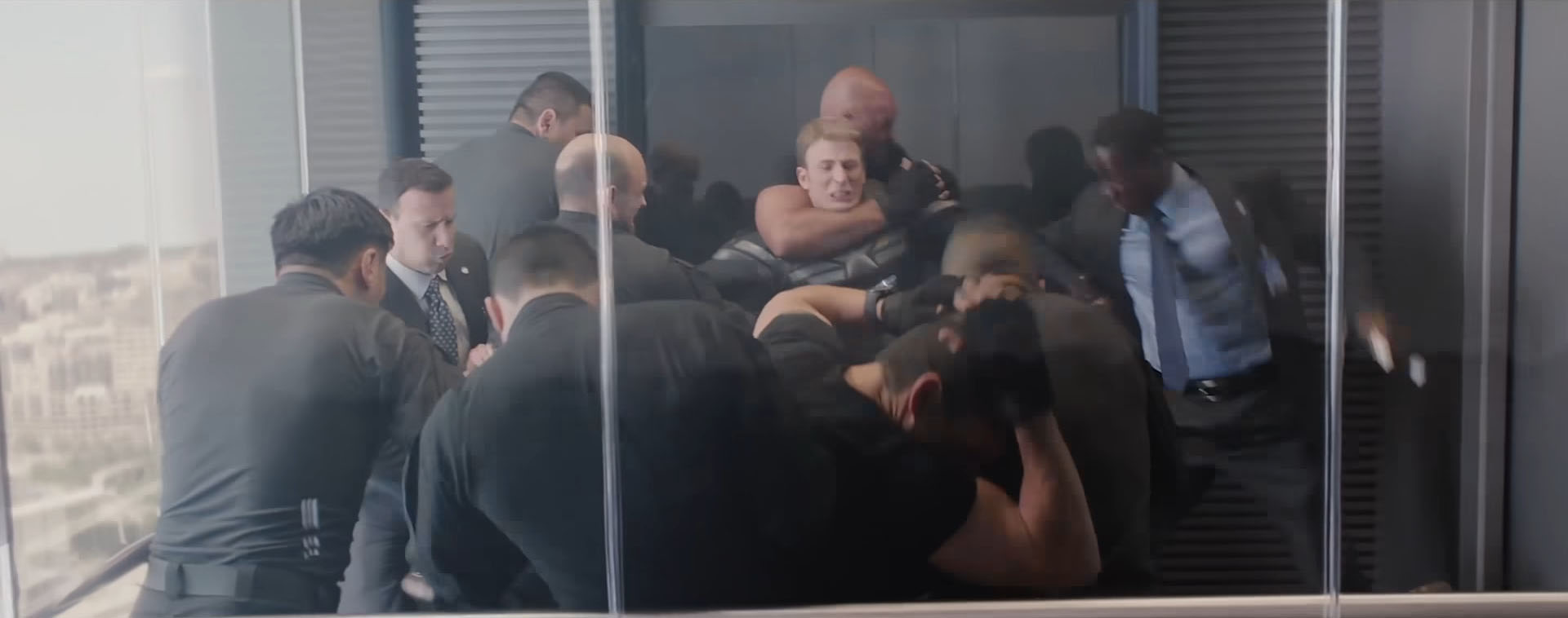 The story is one of political intrigue and spies, but with plenty of action to keep up with the expectation of a comic book movie. After a joint mission with Black Widow to retake a SHIELD ship that was boarded by pirates (led by MMA legend Georges St-Pierre’s Batroc, which was the first time I remember smiling at such a silly and obscure comic character getting MCU’d, though the live action version doesn’t wear a mask or leap really high…) and during the mission Cap sees Widow downloading some secret SHIELD files instead of helping with the rescue, which leads to him questioning his loyalty to Nick Fury and his group, especially when Nick shows him their new plan of having large helicarriers floating over Earth able to find and take out threats as or even before they happen. He also meets and befriends Sam Wilson during this time, a scene where he runs past Wilson over and over while he’s out for a run, constantly saying “on your left” as he goes by has certainly taken on a whole new meaning retrospectively… There is also a sweet and somewhat unsettling scene with Cap and a now 90+ year old Peggy Carter, who clearly has some sort of dementia.