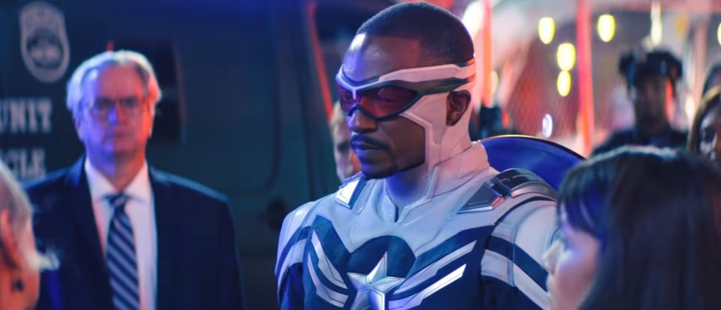 Sam and Bucky take out Walker in a great fight sequence before things slow down a bit, our two titular protagonists make personal discoveries and properly bond with each other (plus Zemo is taken to The Raft prison, for the record), so when the Flag Smashers along with Batroc the not-so-leaper (once again played by Georges St. Pierre, who also appeared in the opening sequence also for the record) directly attack the GRC Sam appears in his full Captain America gear and uses the shield, accepting the responsibility, while both Bucky and even Walker put aside attacking their enemies to save innocent lives. Sharon Carter joins them and ends up killing Karli Morgenthau to bring the conflict to an end, something the new Cap isn’t a big fan of, being able to understand her point of view, even if she was going about it the wrong way. Sam gives a big speech about acceptance and responsibility and soon everyone goes their own ways, including Sam making sure Isiah is honoured for his service, Bucky accepting his time as the Winter Soldier is in the past and can stop trying to make amends, Sharon apparently being the Power Broker all along and Walker becomes USAgent like in the comics, led by the mysterious Valentina Allegra de Fontaine (Julia Louis-Dreyfus) who I’m sure will play some major role down the MCU line…