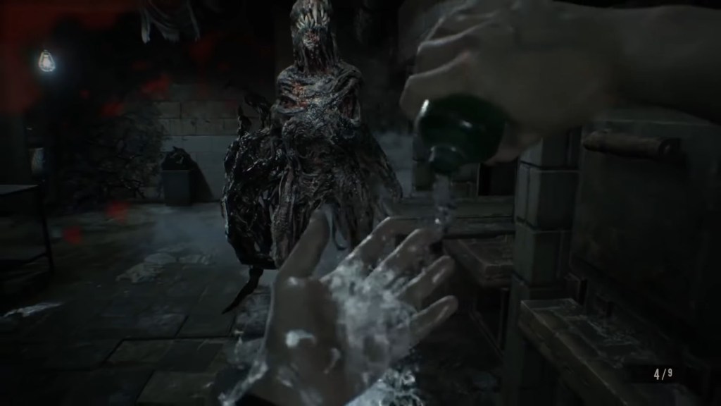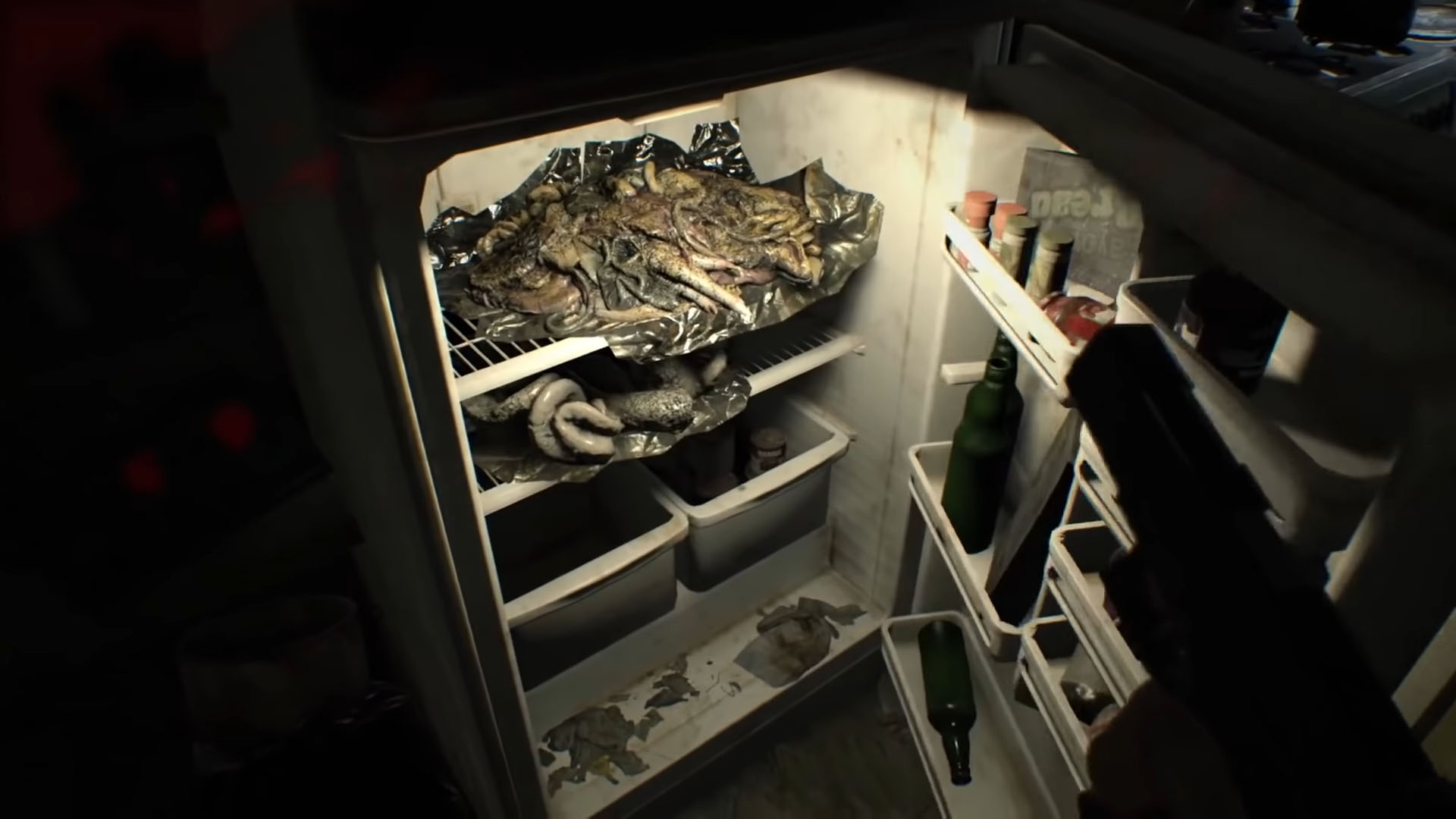 As mentioned the whole game is done in first person, and not in a Doom or COD way where it’s mostly just a gun hovering around the bottom of the screen, this is very much intended to be a V.R. experience, with hands waving, characters grabbing the screen as if it’s your face and lots of other bits. I don’t have a V.R. kit so I can’t tell you how well it works like that, but it’s still a fun game without. The first quarter-to-third of the game is pretty much entirely exploring the creepy Baker House, with a few jump scares and horrifying cutscenes sprinkled in, but eventually you get melee weapons and guns and start fighting mutated people and big bosses. What made this feel far close to the original games is the return of some familiar elements that have been gone for a long time: you only have so many item inventory spots, you can store items in chests that share the inventory across multiple locations, and there are several places you can’t get to without solving a puzzle or going back to when you have the right key with the correct symbol on it. It was a moment when I finally got a key to get to a distant shack-like area that I suddenly felt a rush of original RE nostalgia, despite the shift in perspective.