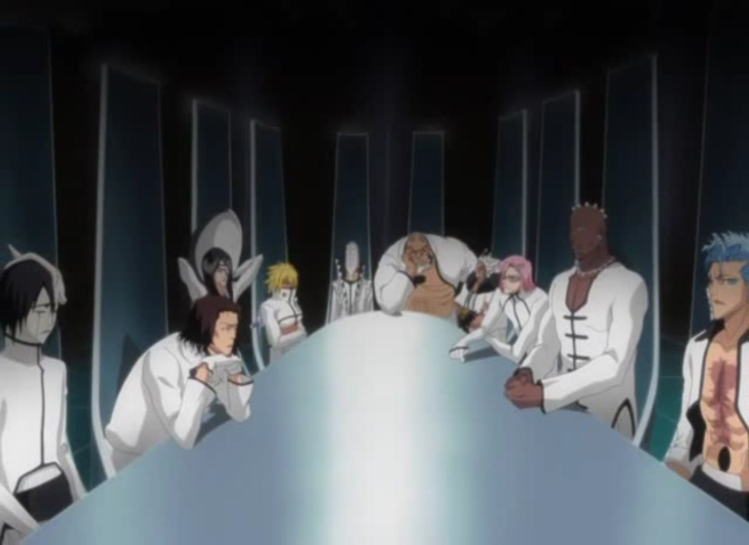 The only other things of note are Aizen and the Espada, as we see a meeting of all 10 Espada, Aizen, Gin and Tosen, complete with the classic “show all of the foes in two rows” panel… turned to animation. We also get Ulquiorra manipulating Inoue some more, Inoue deciding she was going to try and use her powers to “reject” the Hogyoku into non-existence and Espada #5 Nnoitra being a bit of a dick to Ulquiorra before getting Aizen’s manipulation plan explained to him… All good fun.
