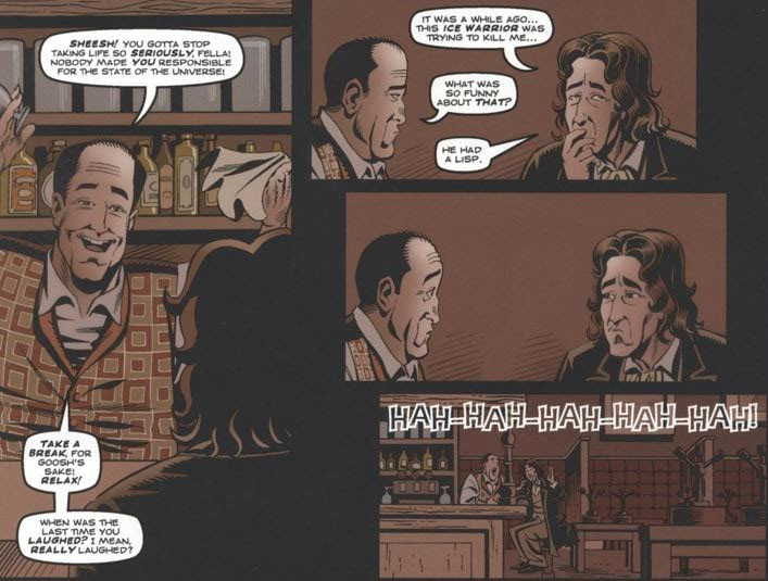 Frobisher last appeared in Seventh Doctor comic “A Cold Day in Hell”, his official leaving story. He has since made a few one-off appearances after this one, though this presumably is set later in his timeline than those if we want him to have a happy ending (which of course we do!)