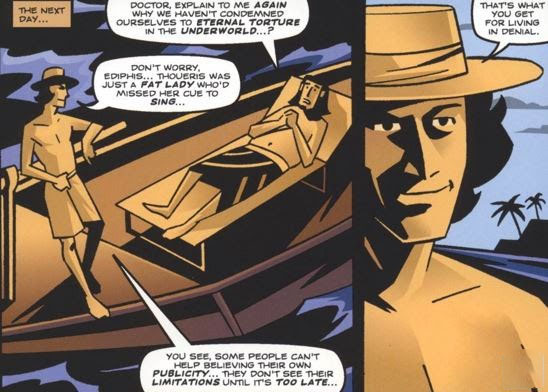 While more “average” than “bad”, “The Power of Thoueris!” is one of those classic DWM “stylised” one-offs, where you either love or hate the more dramatically different artstyle. I don’t actually mind it here, as the story is pure comedy, with a large member of the Osirans rising out of the Nile while The Doctor is taking a holiday there. The Doctor very swiftly outsmarts her and uses her own crocodile-summoning powers to have her eaten alive. Like I said, it’s a one-off comedy thing with a unique artstyle, it has no real substance or lasting power, but it’s harmless, and I do like the image of the Eighth Doctor in the Fifth’s hat.