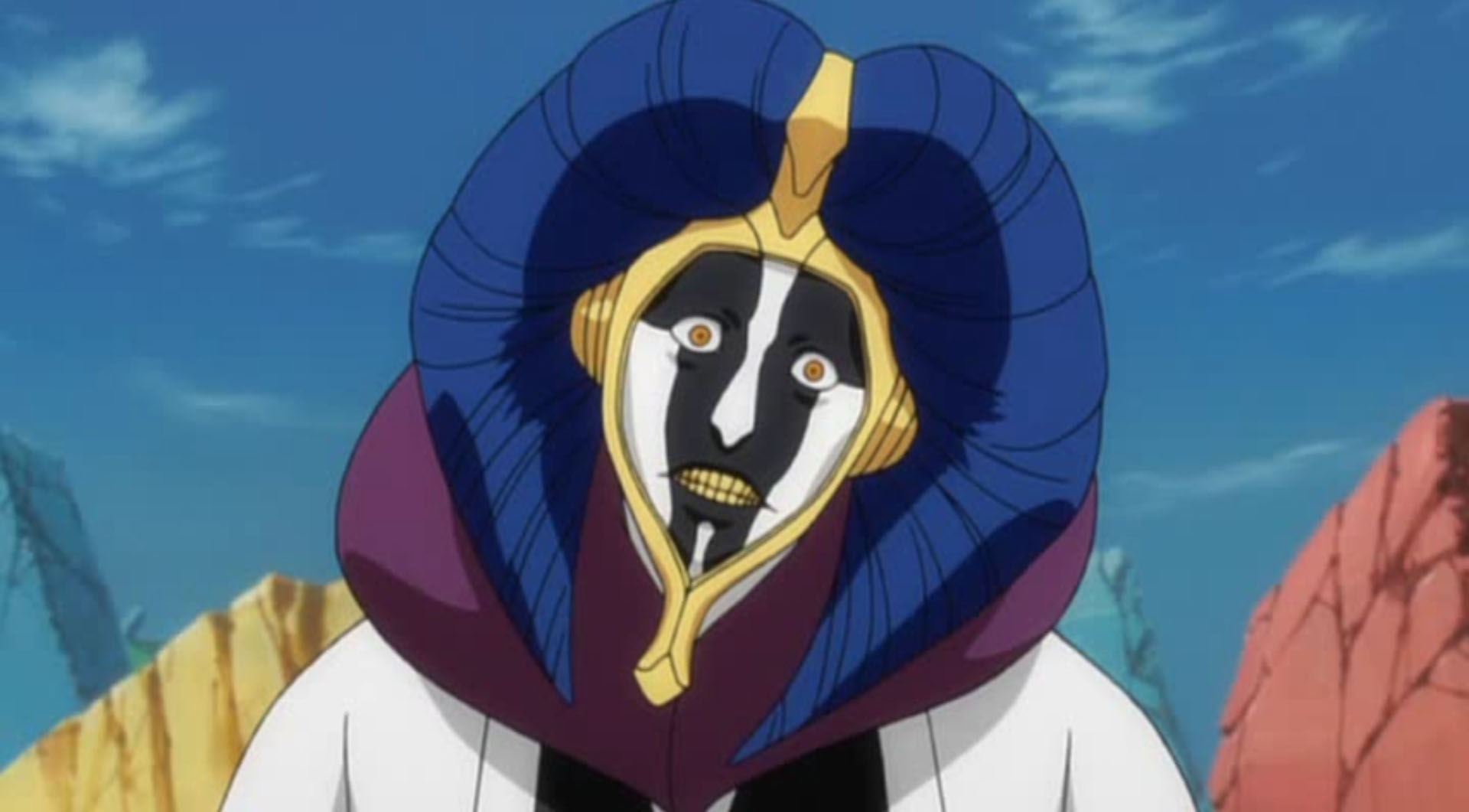 Ichigo goes back to being trounced until he’s saved by the timely arrival of Kenpachi, who informs him that Soul Society have sent four Captains and their Lieutenants to Hueco Mundo to help out. We see Byakuya (whose Lt. isn’t with him, given it’s Renji…) arrive where Rukia fell, Mayuri and Nemu arrive on the battlefield with Szayelaporro and Unohana and her lieutenant arrive to generally heal and help people out, scaring away the always cool looking but sadly pretty crap Rudbornn and his Exequias force. Byakuya ends up fighting and swiftly defeating the Seventh Espada Zommari, who had the power to assign “his love” to parts of his opponents’ body and gain complete control over them. He tried to control the body of Rukia and threaten her already weakened life but Byakuya overcame all that and had the great line that Zommari lost where he “pointed a blade at his pride”, the camera work and original manga panels making it obvious he meant Rukia rather than himself.