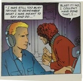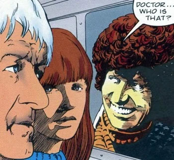 The first in three random “left over” stories that appear in “The Age of Chaos” GN is an odd story, it’s an adventure with the Fourth Doctor where he meets up with the Third Doctor, told to Ace by the Seventh Doctor. So it’s a Seventh Doctor story but one that almost exclusively features the Fourth and Third. It was also extremely hard to find pictures for, but I managed it without resorting to breaking the book’s spine and scanning it myself! Hooray! Let’s take a look…