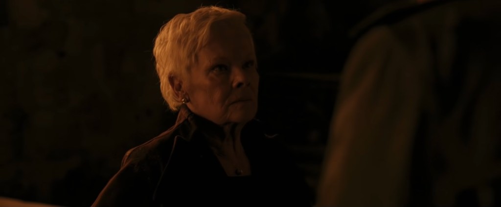 M is not impressed with how little she’s appeared in screenshots on this blog. Sorry, I only do four per film, ma’am!