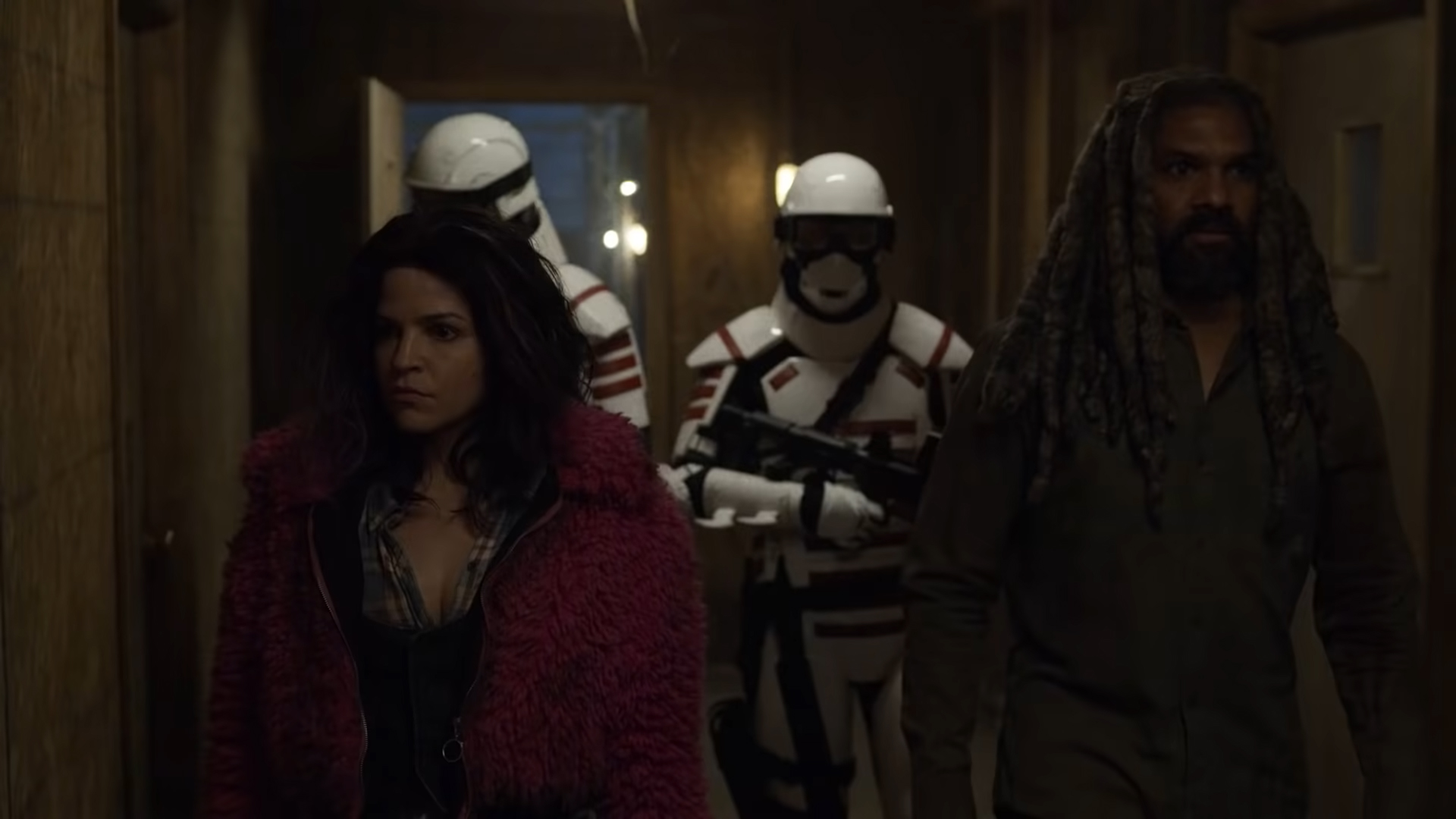 Another standout episode was Episode 6, “On the Inside”, which saw deaf survivor Connie (Lauren Ridloff) meet up with driven-insane survivor Virgil (Kevin Carroll) and the two end up in a classic haunted house-like … house, and get stalked by a family that had been driven so mad they walked on all fours and acted like feral beasts. There were some good old-fashioned jump scares and Connie’s disability led to some unnerving POV shots where there no sounds playing at all.