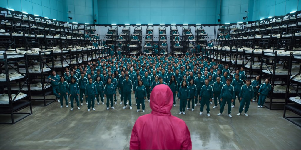 Seong Gi-hun, a divorced and indebted chauffeur, is invited to play a series of children’s games for a chance at a large cash prize. Accepting the offer, he is taken to an unknown location where he finds himself among 455 other players who are also deeply in debt. The players soon discover that losing a game results in their death, with each death adding ₩100 million to the potential ₩45.6 billion grand prize. Gi-hun allies with other players, including his childhood friend Cho Sang-woo, to try to survive the physical and psychological twists of the games…