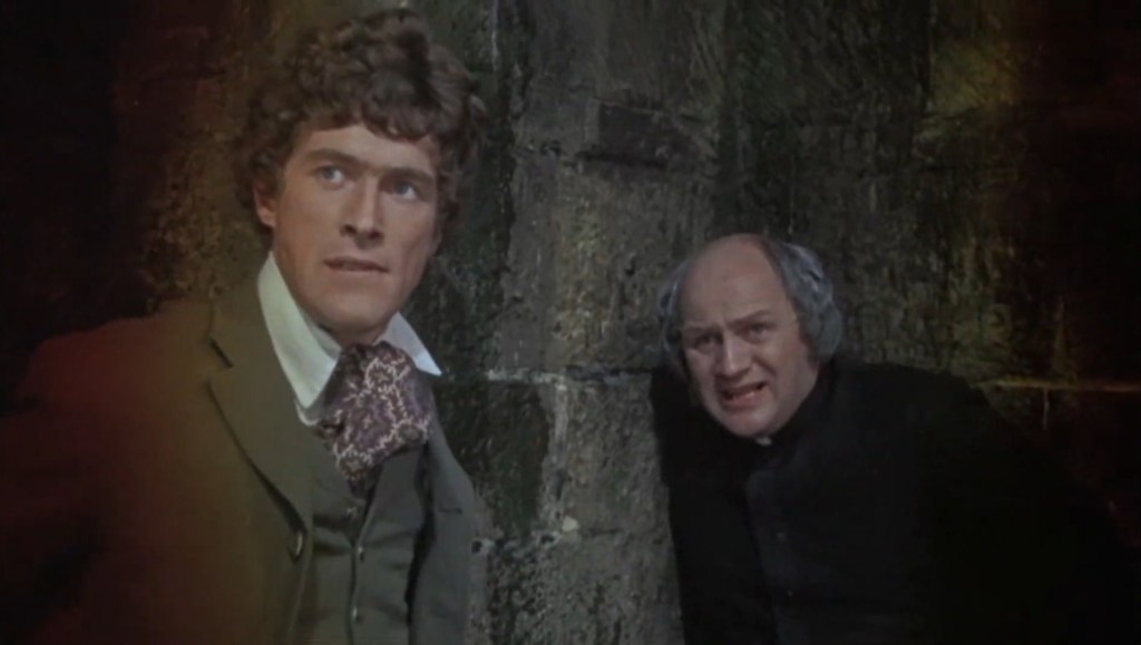 I really enjoyed this one, much to my surprise. So Monsignor (a title in the church, apparently) Ernest Mueller (Rupert Davies) tries to quell the fears of a small village by excorcising and sealing Dracula’s castle with a big cross but while doing so the now Godless (and forever nameless) Priest (Ewan Hooper) slips, hits his head on a rock and his blood just happens to trickle down into the ice-covered lake, into a small crack and directly into Dracula’s mouth, reviving the Count from the icy tomb we saw him end up in last time. Convoluted? Oh yeah. No doubt. Good laugh though! It’s clear to me as these films go on that it was probably this film series that inspired Castlevania’s plot of frequent Dracula resurrections…
