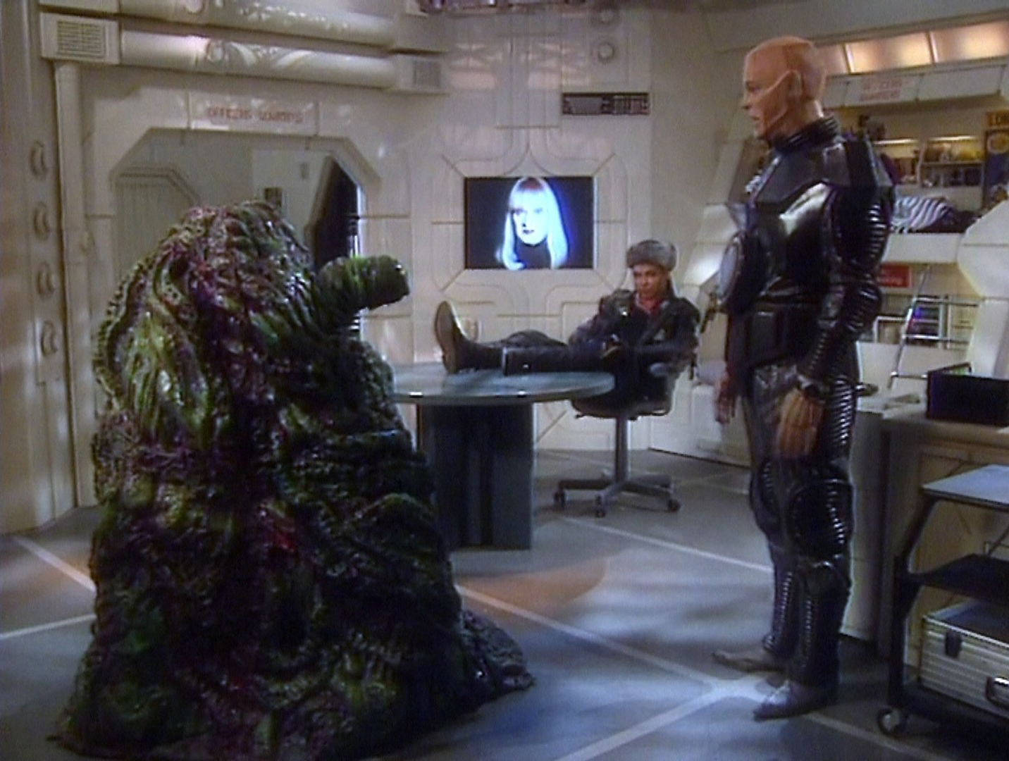 Just realised that despite bigging it up I didn’t take a good screenshot of “White Hole”. Oh well, here’s the Simulant from “Justice” instead, in the middle of the classic “I lied twice!” scene!