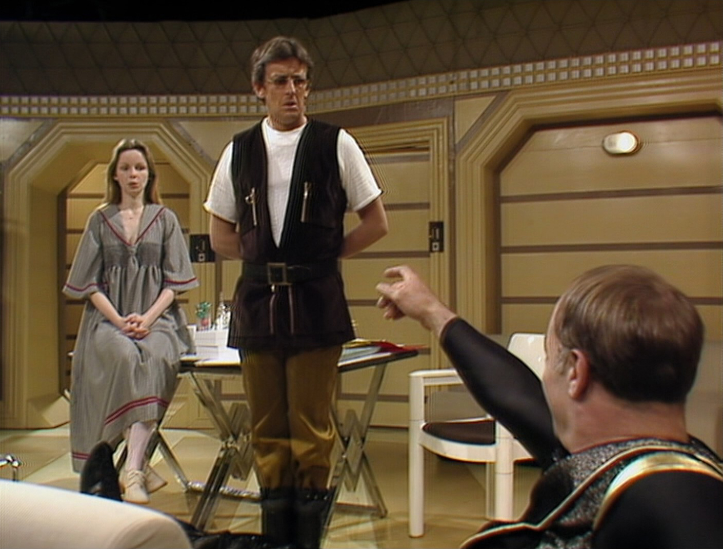 Several small plot points begin to merge, Tryst’s missing crew member Stott (Barry Andrews) ends up not only to be an investigator for the space corps but also hiding on the crystal chunk of the planet Eden, searching for where the drugs were hidden in the tiny machine and able to appear on the merged ships thanks to the odd atmosphere allowing the crystalised dimensions to “leak” on board. The Mandrels also come from the chunk of Eden and The Doctor finds out that when a Mandrel dies it decays into Vrax, so that’s where the new source of the drug is and that’s why Stott couldn’t find the hidden stash: the Mandrels were the stash. In the end it turns out Tryst was the smuggler and Dymond was the buyer, the ships merging being unintentional but Dymond was in the area ready to receive the Eden crystal on his ship anyway. The two nearly get away with it, but The Doctor and Romana reverse some things as they do and Tryst and Dymond are projected into the Empress rather than the Eden crystal projected to their ship. Tryst says he was only doing it because he stopped getting funded for his expeditions so he needed the money to preserve species that were going extinct, which was a good reason for someone to be a villain at least. Obviously The Doctor points out the human cost and Tryst says “at least they have a choice”, which is at least a little bit thought provoking… Maybe?