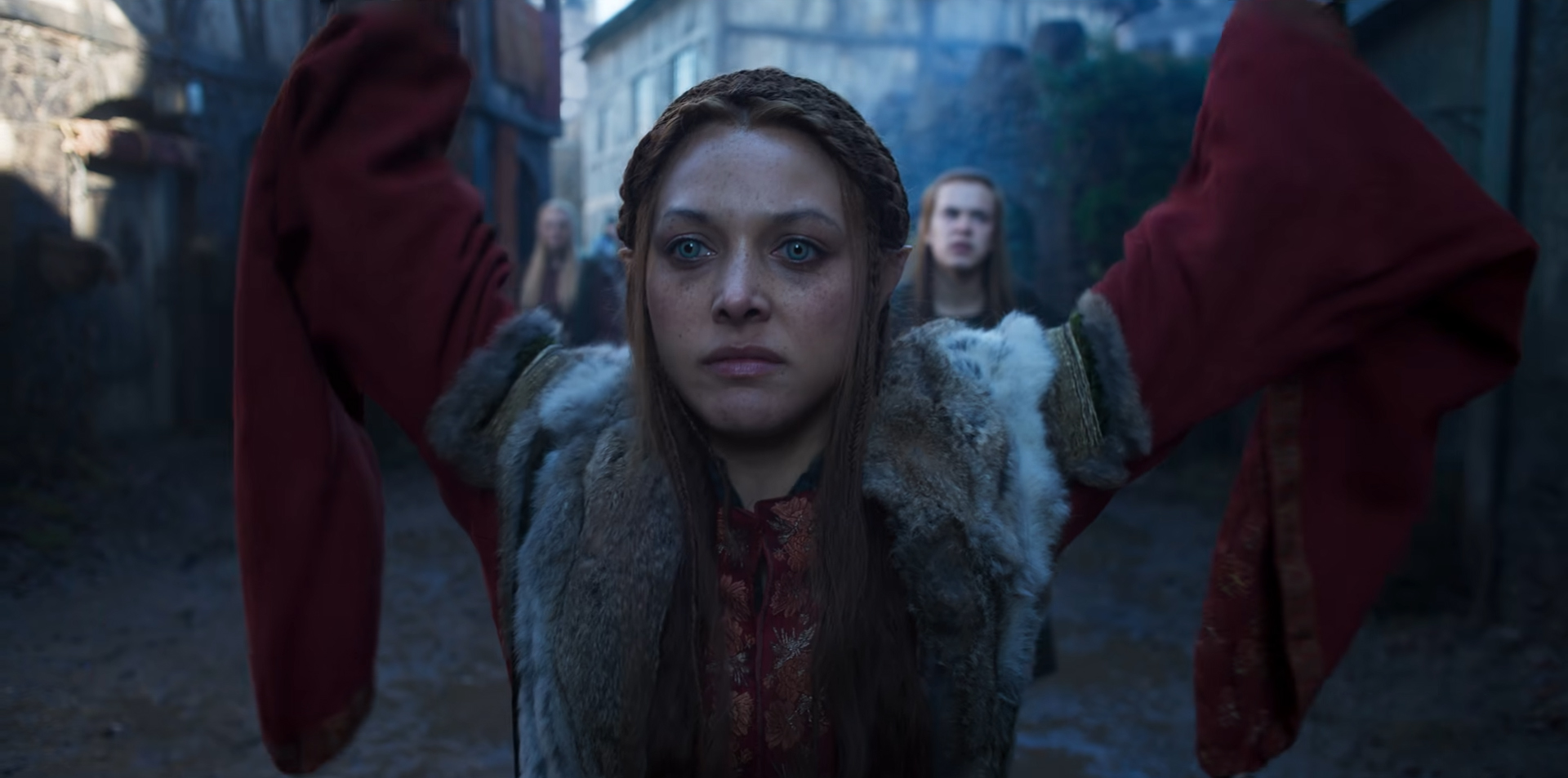 As for a central antagonist, well as usual they’re spread about a bit, but one of the main ones is a fire mage named Rience (Chris Fulton) who is sent after Ciri and encounters both always-amusing bard Jaskier (Joey Batey) and powerful mage / Geralt love interest Yennefer (Anya Chalotra), then a trip to Kaer Morhen where he steals the new mutagen before finally being stopped by our titular Witcher when he tries to capture Ciri in a temple called Melitele. He’s a fun, if simple character who is very much alive still and working for a mysterious other person by the end of the season. In reality the real antagonist is an ancient witch-like being called Voleth Meir (Ania Marson) who was locked away in another realm unable to escape her hut (which has a pair of legs, for some no doubt old fabled reason!) but gains strength through the pain and suffering of others. She takes Yennefer, fellow mage Fringilla (Mimi M. Khayisa) and Elven sorceress Francesca (Mecia Simson) into her hut and convinces all three separately that she is something more divine and that she can give them what they want. Yennefer lost her powers when she went overboard with the fire magic at the end of the previous season so wants them back, Fringilla wants her side of Nilfgaard to win the war and Francesca wants peace for her people, especially as she’s now pregnant with the first Elven baby in many years.