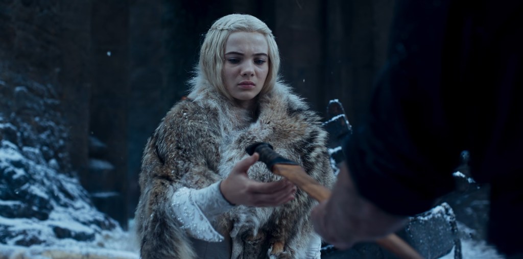 All the focus on this season is on Ciri (Freya Allan), who after a fun opening episode that saw her and Geralt (Henry Cavill) survive a vampire-like being at an old manor, is taken to Kaer Morhen, the partially destroyed Witcher stronghold that is still home to several Witchers including Geralt’s old mentor Vesemir (Kim Bodnia). After a fellow Witcher is turned into a tree-like being known as a Leshy Geralt gives the okay to start straining Ciri to defend herself, and even some fellow Witchers pitch in despite some lingering anger towards her for the death of Eskel (Basil Eidenbenz), the aforementioned tree-man. This is where we start getting more information about Ciri as Geralt follows some leads about the odd monsters attacking Ciri and finds out she destroyed a monolith during her escape last season, something that should for all intents and purposes be impossible, where as Vesemir finds out she has “Elder Blood”, something thought extinct and a key ingredient in the mutagen that creates Witchers, meaning the powerful sub-species may not die out with his students. The mage Triss (MyAnna Buring) tries to help Ciri trace her ancestry via a vision but is shown a powerful image of death that frightens her to her very core to top things off. Plenty of mystery around our central character.