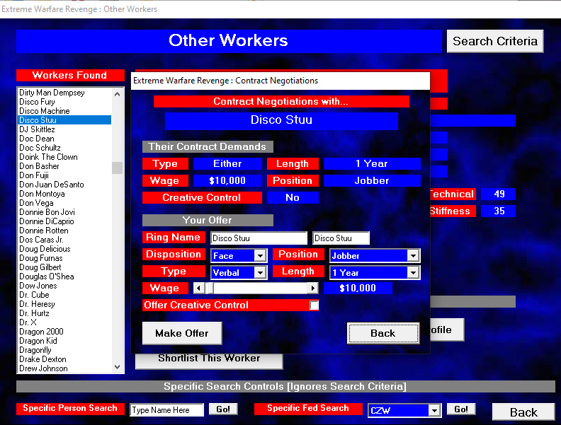 Contract negotiations from a Pre-4.0 build of EWR. $10,000 dollars per appearance for a Jobber?! Damn! Disco Stuu may not advertise, but he sure does charge out of the arse for an appearance…