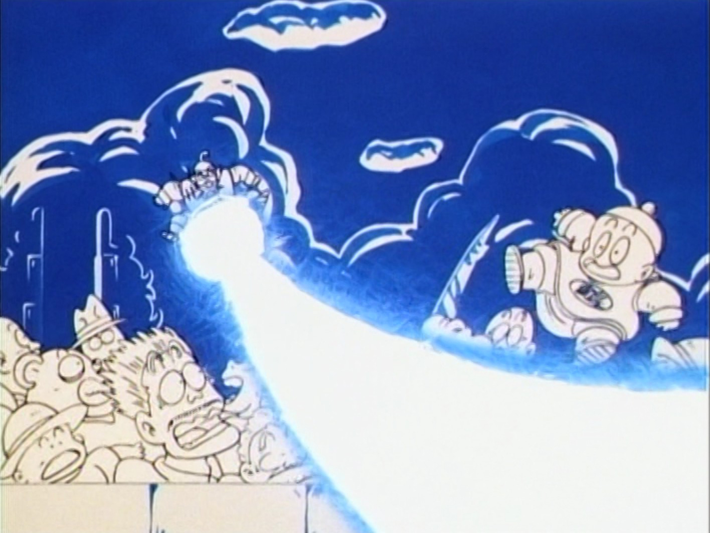 After another filler-night’s sleep the finals begin and it’s another great fight, lots of different forms of combat including hand-to-hand, some Ki attacks including a weird volleyball-related move from Ten, and even a bit of wrestling via the Boston Crab, for some reason! During the course of the battle Goku is frozen in place a few times by Chioatzu, who is threatened by the Crane Hermit to do it so Tenshinhan wins. Ten gets wise of this and has a crisis of faith, he wants to beat Goku with his own ability not through cheap means, so he eventually tells Chiaotzu to stop, causing the Crane Hermit to try and kill him for betraying him only to get a Kamehameha to the face by Master Roshi, sending him way out of the Tournament grounds.