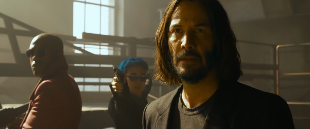 This brings me to my next complaint: Lana Wachowski really, really didn’t want to make this film, did she? So in this Matrix Neo has been set up as a game programmer who is famous for making a trilogy of games called “The Matrix” that follow the plot of the films and there is actually a scene where Neo’s called into his boss’s office to get told that “their publishers, Warner Bros., want us to make a sequel to the Matrix Trilogy and have told us if we don’t do it they’ll do it without us”, to which Neo bemoans that they shouldn’t be able to do that and then boss pretty much says “I know, it sucks, but we’ll have to do one anyway”. So subtly is out the window from the off. Then thanks to a combination of The Matrix Trilogy being a thing in this Matrix and the fact that Neo made a program within the Matrix that featured a Morpheus character (played by Yahya Abdul-Mateen II) that is then saved and brought into the Matrix proper by Bugs (Jessica Henwick), a girl not unlike Trinity, leads to endless call backs to the original series, most of which is created to mock it. Seriously Lana decided to take some time to make the fans of the Matrix feel bad for liking it and wanting this sequel. Throw in the fact that Keanu couldn’t even be bothered to change his John Wick look for the film and generally looks like he’d rather be any where else and the whole film feels like nobody wants to be involved with it and you should feel bad for potentially liking it due to the old films apparently now being crap and cliché. (well, they are at the very least cliché to be fair, but I still shouldn’t be mocked for liking it within a film in the same series, anyway…)