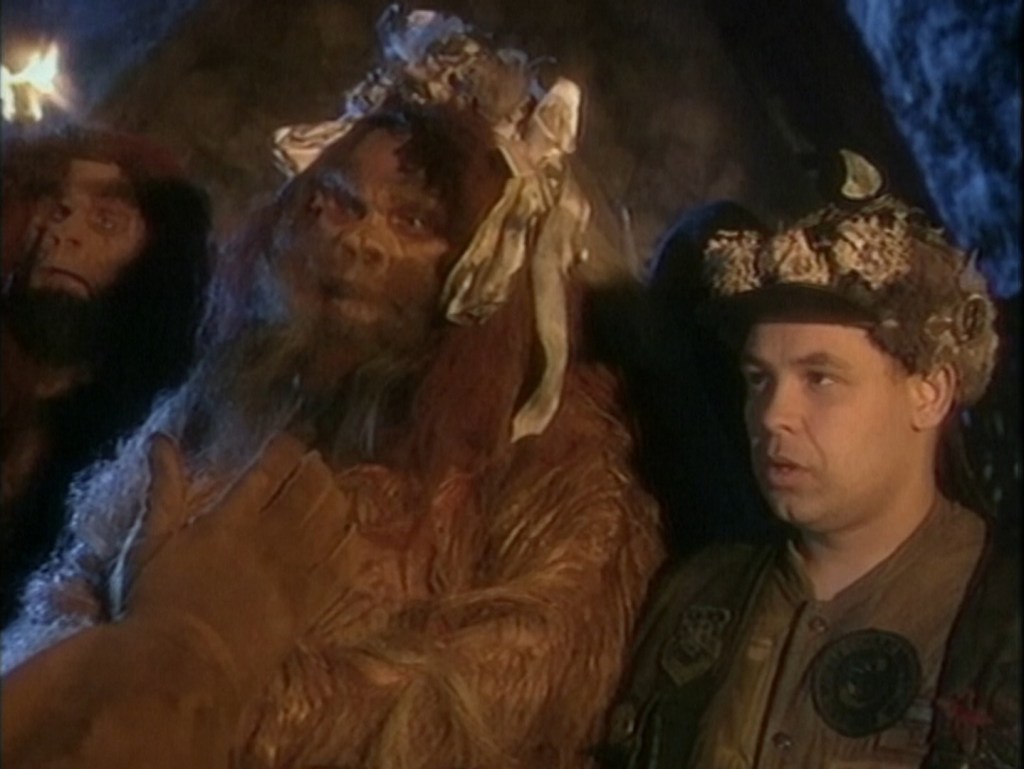 Despite what the title suggests “Emohawk: Polymorph II” isn’t actually any kind of direct sequel, it just uses a creature with similar powers to the classic foe. When Starbug is damaged they decide to trade with some Gelf, or “Genetically Engineered Life Forms (so created by humans in order to stick to the “no aliens” rule of Red Dwarf) and in the end they trade the needed parts in exchange for Lister marrying one of the clan’s daughters, which given they look like overweight hairy ape-people doesn’t go down well. It does lead to one of my all-time favourite gags as Rimmer, Cat and Kryten leave the camp expecting to free Lister in the morning but instead he appears running behind them and shouts “Change of plan! Leg it!!” As revenge the chief Gelf unleashes the “Emohawk” which can transform into any object and suck out personality traits, much like the old Polymorph. To throw even more nostalgia on the … fire? (huh?) Cat gets attacked and has his cool removed, turning him into Dwayne Dibley from the false reality in the previous series, where as Rimmer has his cowardice stolen, leading him to become Ace Rimmer from Series IV. It’s a rare case of Red Dwarf just jumping head first into call-backs. Eventually the Emohawk is defeated (before Ace Rimmer can sacrifice himself and Cat) to end the episode.