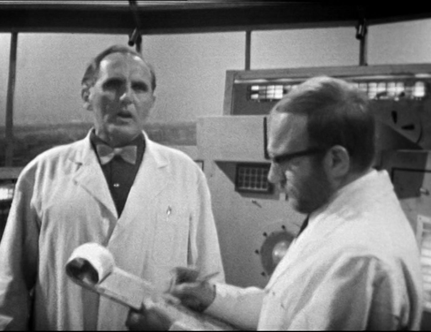 It’s certainly an odd sight, seeing William Hartnell’s Doctor walking around “modern day” London. Even weirder is that it’s London in the mid-60s, complete with “groovy” club scene for the kids at home, something I associate with people looking back at the era, so it’s a good laugh. Beyond the setting though and we have basic, but fun “rogue A.I.” story. Professor Brett (John Harvey) has created WOTAN (pronounced “Votan” despite no one involved being German…) an impressive “thinking computer” that is so successful it somehow has been given the go ahead to connect itself to all major computers around the world from its base in the London Post Office Tower, an exciting new landmark of the time. WOTAN though soon reveals that not only has it achieved sentience but has hypnotic powers, soon controlling the minds of his two lead creators in Professors Brett and Krimpton (John Carter) as well as Major Green (Alan Curtis).