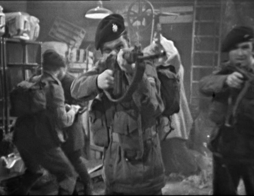 Sir Charles leads an assault on the warehouse and a single War Machine nearly wipes out the whole troop due to its weapon disabling abilities, but The Doctor manages to stop it. After hearing about 12 more machines (or is it 11 more for a total of 12… I can’t remember…) The Doctor arranges to capture a fully working War Machine and then reprograms it to head back to WOTAN and destroy it (the War Machine being immune to the hypnosis). Ben rushes to the Tower to save Polly before the whole room explodes and WOTAN is finished. The Doctor leaves London but before he does Ben and Polly sneak on board the TARDIS…