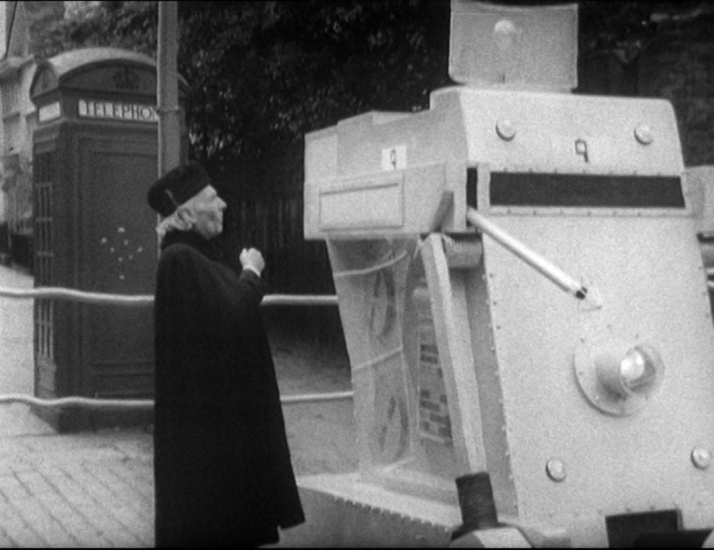The only other thing that still gets me about The War Machines is… The War Machines. Now, having a large prop driving around the place is impressive for the time, but given the story they’re just not very intimidating, let alone believable enough as a force that could take over London. Their “guns” just fire smoke, they have very, VERY slow moving arms that swing down with some force if you happen to be directly under them and one of the tests of these killer machines involved it very slowly driving into a stack of empty boxes and barely knocking them over. Mid-60s BBC TV budget is a great and valid excuse and everything, but even considering that it was a bit… too naff for me. At least it was funny, I had a huge smile on my face as the “terrible War Machines” were flailing about but it has to be made clear that was the opposite reaction they were going for…