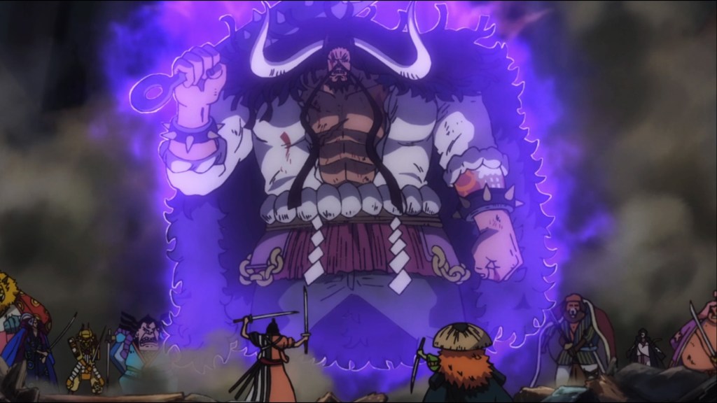 I’ve been waiting for a natural break in One Piece’s Wano Arc but with the storyline is in full swing now everyone has actually made it to Onigashima, it’s been more tricky. Thankfully the end of Episode 1011 (yes, Episode one thousand and eleven…) had at least a nice little cliffhanger to end on, sort of literally! So as we do two or three times a year, let’s take a look at a chunk of recently-aired One Piece!