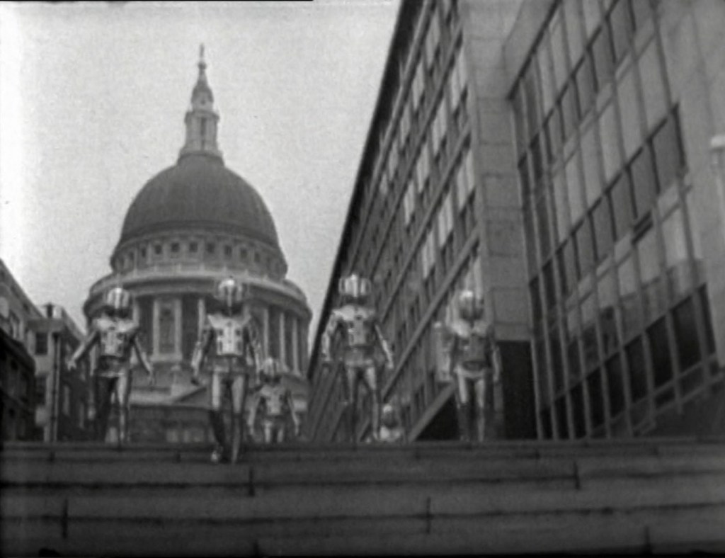 I may as well get the obvious screenshot out of the way: “The Cybermen walk down the steps of St. Paul’s Cathedral.” There. Done.